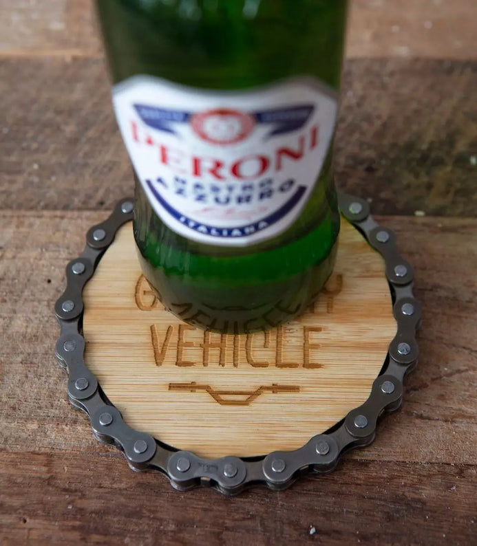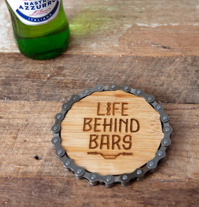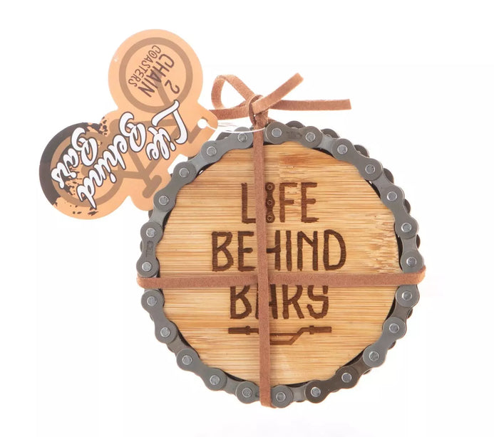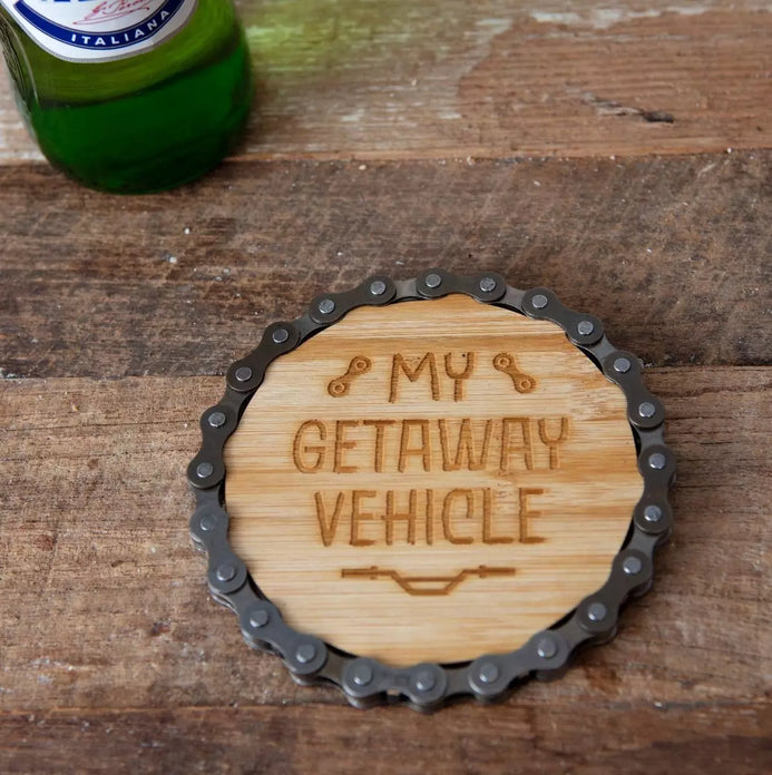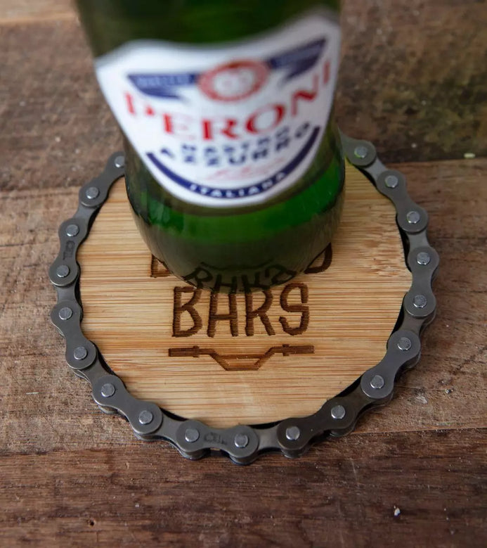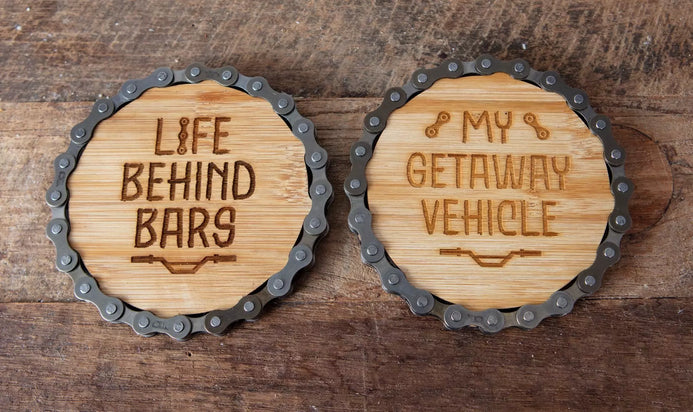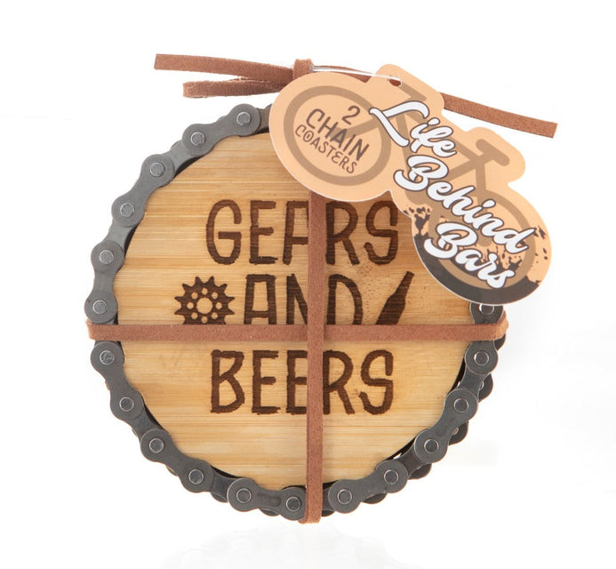 ¿Te encanta la cerveza? ¿A Wheelie le encanta el ciclismo? Difunde tu amor por las bicicletas en tu hogar con estos divertidos y elegantes posavasos para bebidas con temas de ciclismo. Hecho de bambú y cadena de bicicleta real, y grabado con excelentes citas inspiradas en el ciclismo "Gears and beers" y "I lycra way you ride", este juego de dos posavasos novedosos se sienta perfectamente en cualquier escritorio o mesa de café en el hogar y crea un descarado ¡Accesorio de ciclismo que incluso tu pareja puede disfrutar! Completo con cordón de cuero sintético marrón y etiqueta para columpio en forma de bicicleta, este juego es el regalo perfecto para un entusiasta del ciclismo en su cumpleaños, día del padre o incluso como un Papá Noel secreto en Navidad.