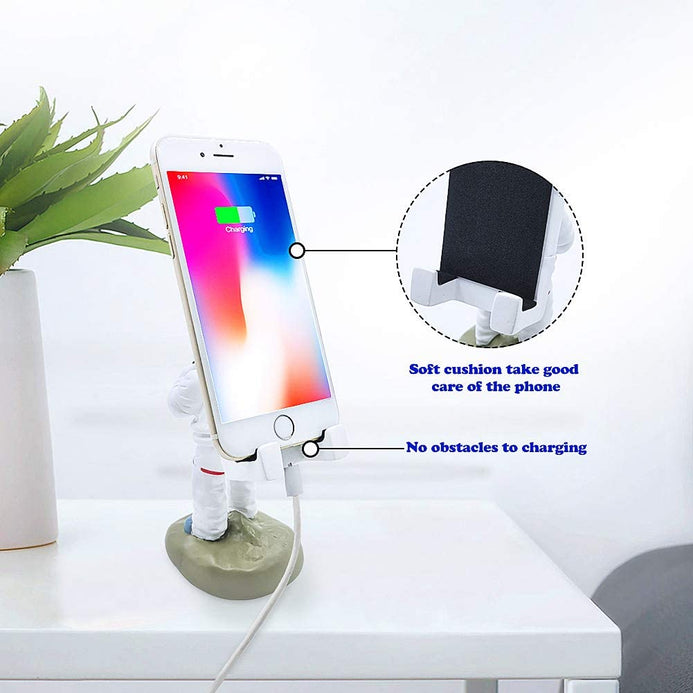- Durable: no te preocupes por caídas, este bonito soporte de teléfono celular de astronauta está hecho de polirresina, es resistente, robusto y no se decolora ni daña de ninguna manera.