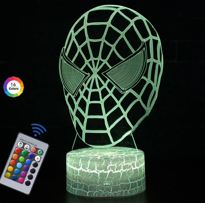 Una increíble lámpara 3D con la figura de Spiderman para iluminar tu habitación y añadir un toque de diversión. Se puede usar como luz nocturna o como decoración. Perfecto para los fans del superhéroe arácnido. ¡Haz que tu habitación sea épica con esta lámpara 3D de Spiderman!