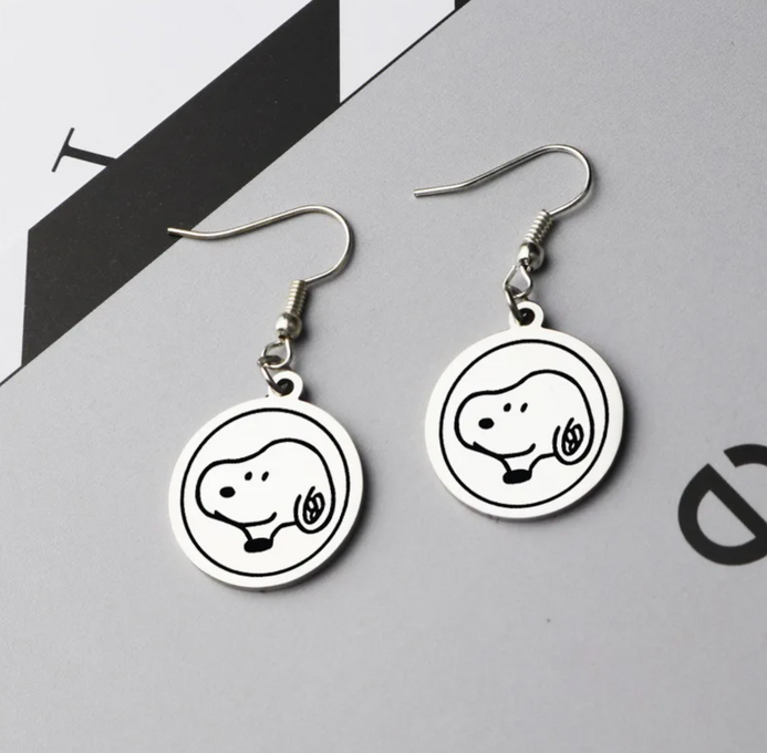 Luce este par de aretes inspirados en Snoopy, ideal para los amantes de la moda. Con un diseño simpático y moderno, estos aretes son el accesorio perfecto para complementar cualquier atuendo. Hechos de materiales de alta calidad, te garantizamos un producto duradero y de gran estilo. ¡Haz una declaración divertida con Aretes Snoopy!
