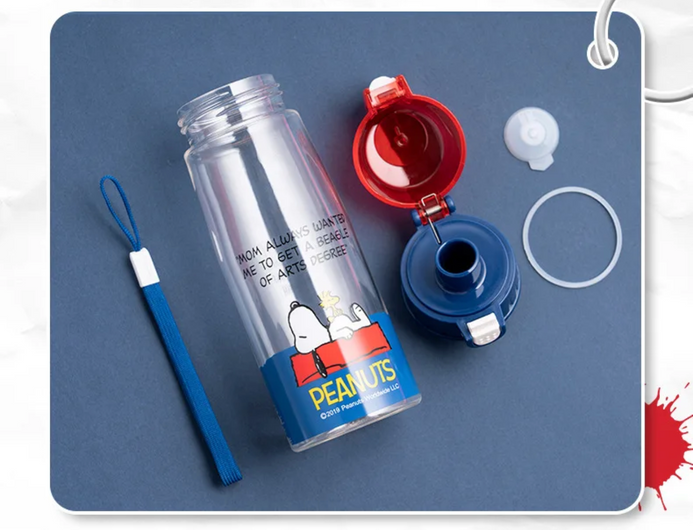 ¡Mantente hidratado con estilo con la botella de agua de plástico Snoopy! Esta botella de agua cuenta con un diseño divertido y llamativo de Snoopy en un práctico tamaño para llevar a todas partes. Fabricada con plástico resistente, es perfecta para acompañarte en tus aventuras diarias. ¡Haz que beber agua sea más divertido con Snoopy!