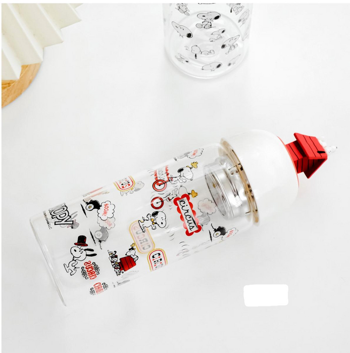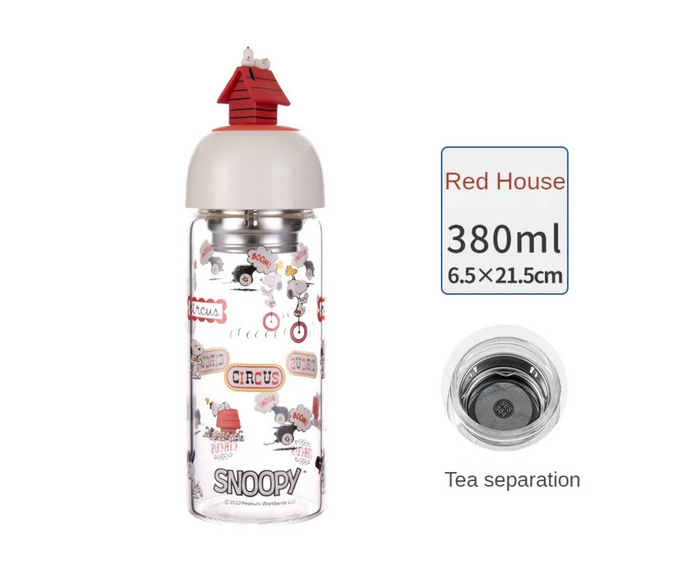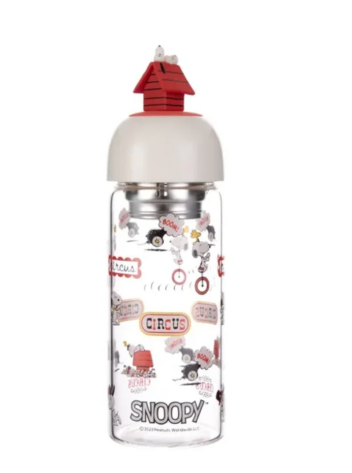Disfruta de tu te favorito en cualquier lugar con la botella de vidrio con infusor de te Snoopy. Su infusor integrado te permite preparar tu te a tu gusto, mientras que su diseño de vidrio te permite ver el proceso de infusion. ¡Mantente hidratado y con estilo con Snoopy!