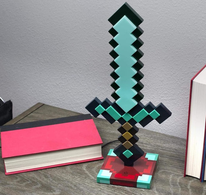 - Los sueños de Minecraft se hacen realidad: haz realidad tus creaciones digitales con la lámpara de escritorio Minecraft Diamond Sword Esto es una luz de acento perfecta para iluminar tu cueva de hombre, dormitorio, habitación de los niños, cine en casa o estación de trabajo.
