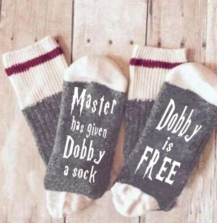 - Mensaje bonito y divertido: calcetines con letras impresas en la parte inferior de los calcetines Master has given dobby a sock, dobby is free