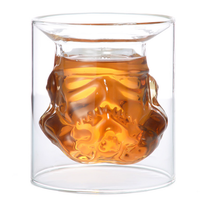 Como ejecutores de la voluntad del Imperio, los Stormtroopers no usan vasos y licores normales (algunos dirían que aburridos), y tú tampoco deberías hacerlo. El Decantador de Whisky Stormtrooper es un elegante recipiente de vidrio. Puede almacenar y exhibir sus mejores licores y el corcho evitará que sus bebidas pierdan su sabor con el tiempo. Por nuestra propia experiencia, podemos decir que el whisky se ve realmente maravilloso, pero por supuesto puedes llenar el casco con soda o agua simple. Un verdadero fanático del universo de Star Wars solo debería disfrutar de las bebidas de un vaso de whisky Stormtrooper. Es un vidrio de alta calidad que parece normal al principio, pero revela un casco tridimensional genial una vez que está lleno de líquido.