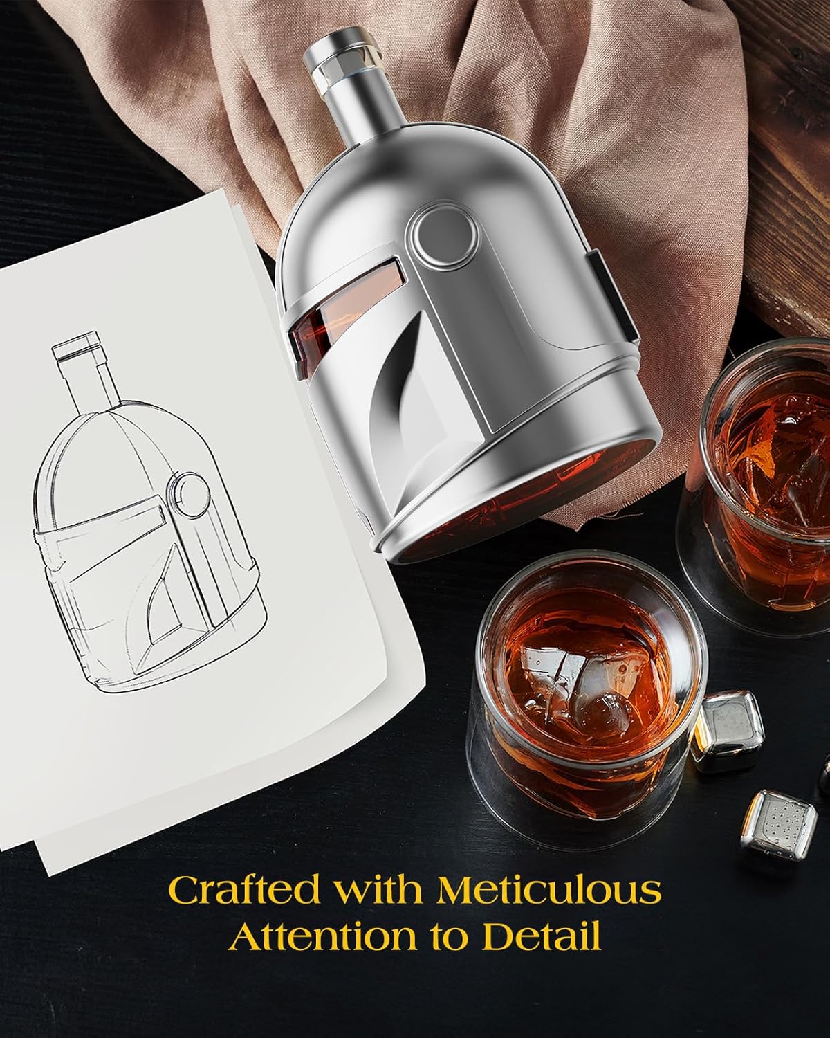 Disfruta de tus bebidas favoritas con el Set Whiskera y Vasos Mandalorian Star Wars. Este conjunto incluye una whiskera y vasos diseñados con motivos exclusivos del Mandalorian, perfectos para los fanáticos de la saga. Fabricados con materiales duraderos, ofrecen una experiencia única para disfrutar en reuniones o como pieza decorativa. Ideal para quienes buscan combinar funcionalidad con estilo inspirado en Star Wars.