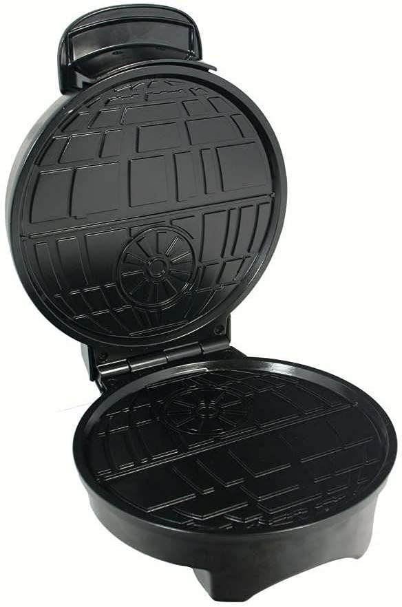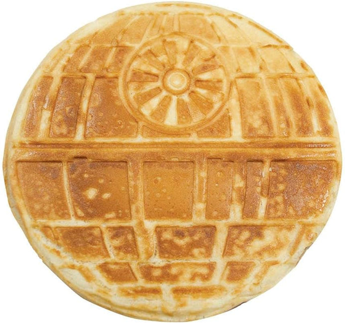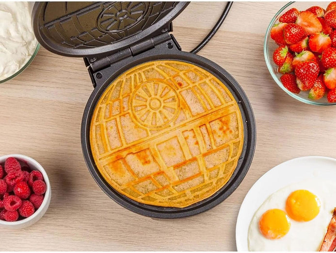 - Se ve genial en cualquier encimera: con una imagen en blanco y negro en el exterior y una placa de gofre detallada en el interior, este gofre te da una doble dosis de la estrella de la muerte