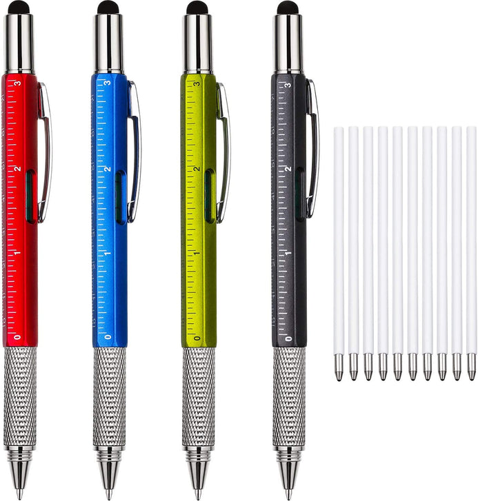 - Bolígrafos multiherramienta: el paquete incluye 1 bolígrafos de herramientas tecnológicas y 1 recambios, duraderos, inteligentes y portátiles; el bolígrafo de herramientas de tecnología viene con 6 funciones muy prácticas, un lápiz con relleno, medidor de nivelación, regla, destornillador de ranura y cruz, lápiz capacitivo de pantalla táctil para escribir sin problemas.