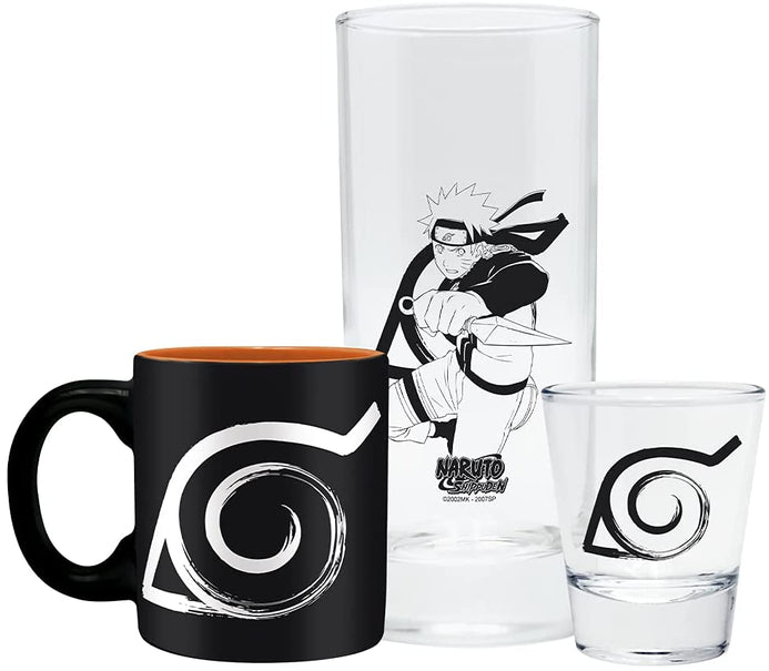 ¿Necesitas algo de qué beber mientras pululas todos esos tazones de ramen? Articoli tiene cubierto con nuestro juego de drinware de 3 piezas de Naruto. Con una taza de café expreso y un mini vaso con el símbolo de Hidden Leaf Village y un vaso con Naruto preparándose para realizar un Jutsu de saciar la sed, es perfecto para los fanáticos del anime desde Konoha hasta Kagerō.