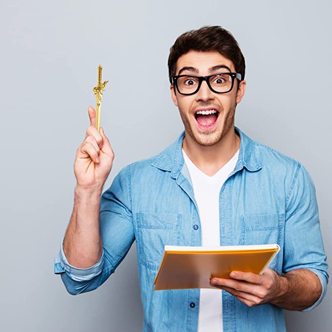- Información sobre el tamaño: cada bolígrafo de espada mide aproximadamente 6.3 in de longitud, el tamaño adecuado no ocupa demasiado espacio, fácil de almacenar y colocar. Los bolígrafos de espada geniales también son muy prácticos cuando escribes con ellos