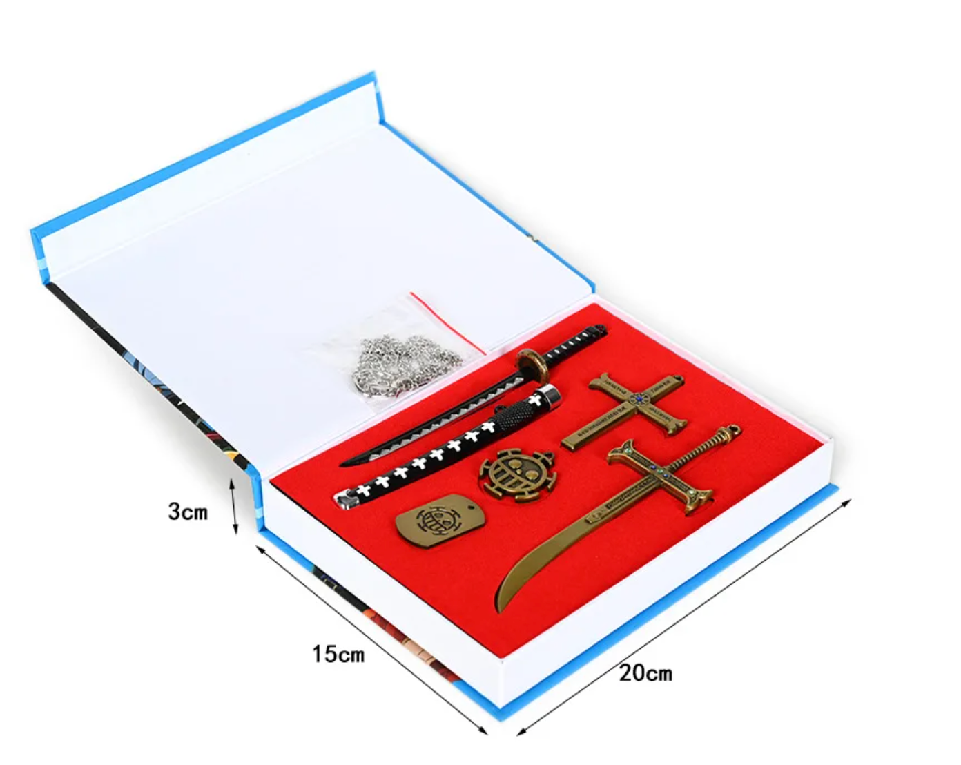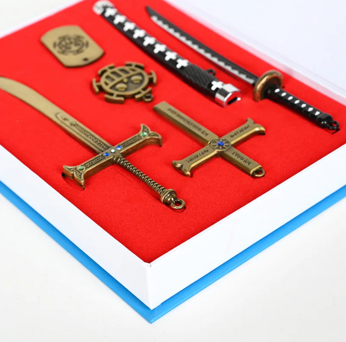 ¡Conviértete en un verdadero fan de One Piece con nuestro set de llaveros y collares! Incluye un collar inspirado en la legendaria serie de anime, un llavero colgante de tus personajes favoritos como Luffy, Dracule y Mihawk, ¡! ¡Demuestra tu pasión por One Piece con este increíble juego!