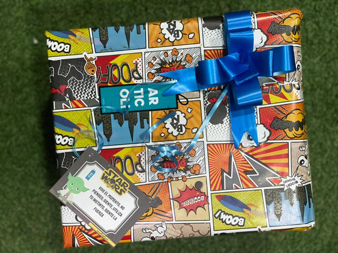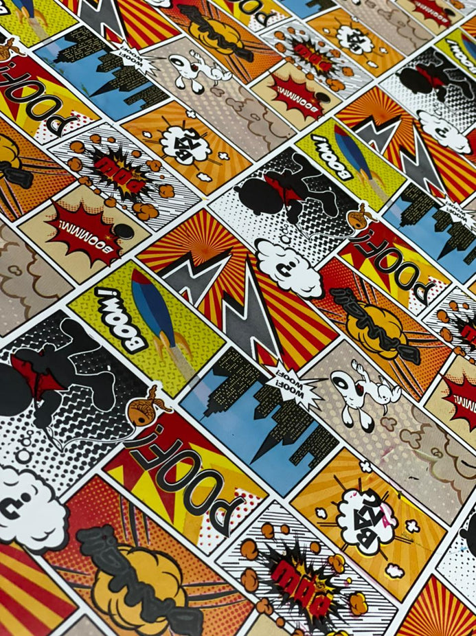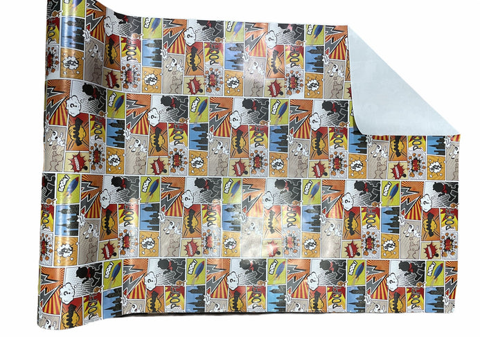 Regalo Premium con un acabado BRILLANTE Cuenta con un patrón de Comic con divertidos. sobre un fondo blanco Papel de regalo que añaden un buen toque final a tu regalo especial.