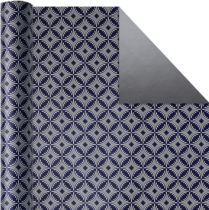 Envoltorio + Lazo Patrones geométricos acentuados, plata y azul marino,