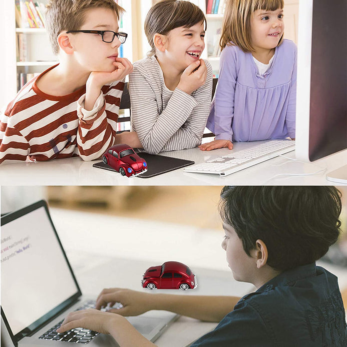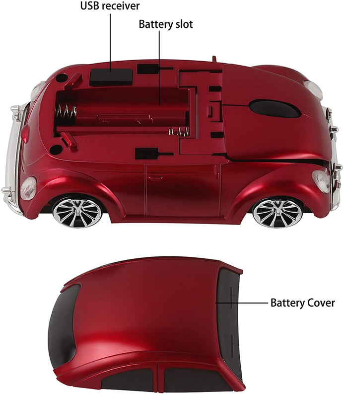 forma de coche deportivo, no solo tiene una apariencia llamativa, sino que también proporciona un rendimiento estable y una sensación cómoda de la mano. Conecte el receptor al puerto USB de su ordenador y ya está listo. El modo de reposo automático garantiza una larga duración de la batería, perfecto para aplicaciones domésticas y de oficina, y también es una gran opción como regalo de inauguración de la casa para amigos y especialmente para niños.