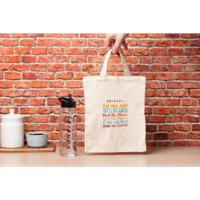 Este juego de regalo de bolsa de asas y botella de agua Friends es duradero, elegante y mostrará tu personalidad de una manera divertida y funcional. Sea cual sea la ocasión, este set de regalo de bolsa de asas y botella de agua Friends es un excelente y práctico regalo para los fanáticos de esta icónica serie de comedia. La bolsa de lona se empaqueta dentro de la botella de agua que se suministra con una etiqueta de columpio impresa.