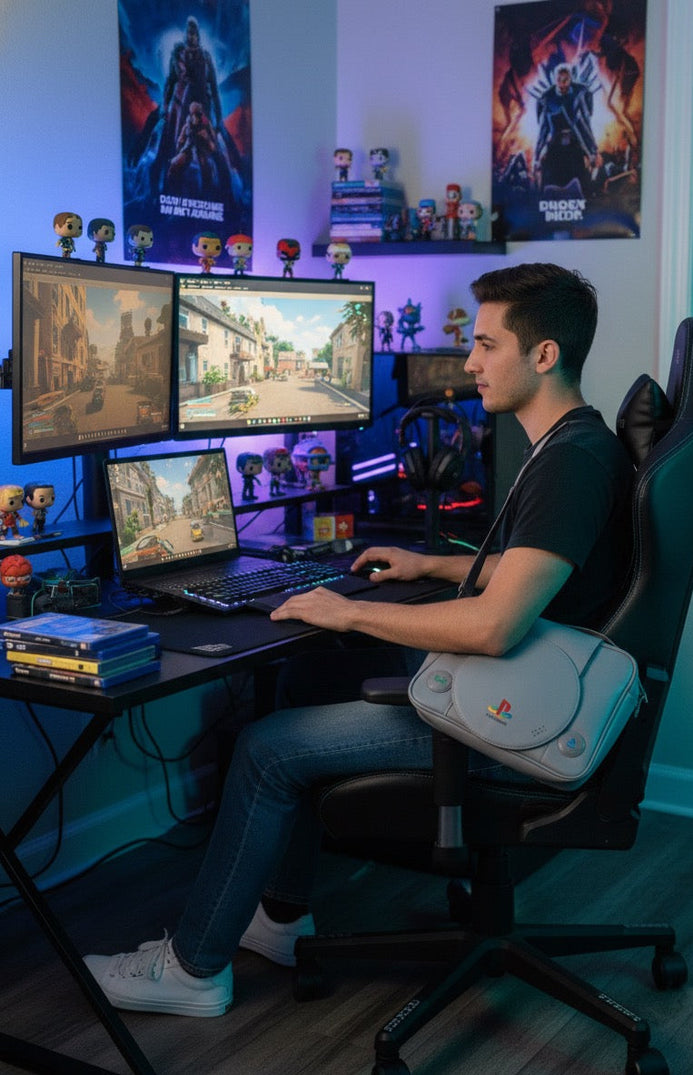 Bolso Playstation con diseño icónico que celebra la legendaria consola de videojuegos. Perfecto para transportar tus accesorios gaming, documentos o artículos del día a día con estilo. Confeccionado con materiales resistentes y acabados de calidad premium, este bolso combina funcionalidad y pasión por los videojuegos. Ideal para coleccionistas y fanáticos de PlayStation que buscan llevar su amor por la marca en cada salida.