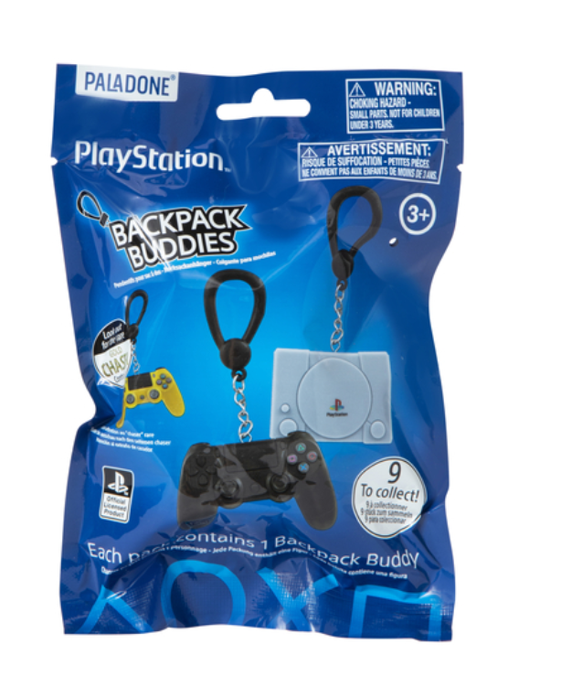 ¡abre una bolsa ciega de mandos a distancia y consolas de playstation™ backpack buddies! cada uno tiene un clip de mochila sorpresa. ¡o usa el tuyo como llavero!