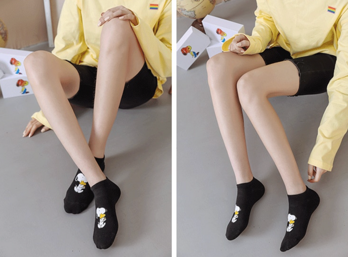 Nueva caja de regalo Snoopy, calcetines de boca baja impresos, calcetines de primavera y verano, calcetines femeninos de algodón peinado ins, bonitos calcetines de barco de dibujos animados