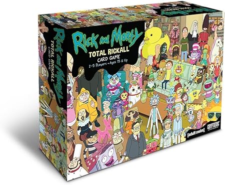 Juego de cartas estratégico basado en la serie animada Rick y Morty. En Total Rickall, los jugadores deben identificar a los personajes reales de los falsos mientras completan misiones y acumulan puntos. Perfecto para fans de la serie que buscan diversión competitiva con amigos y familia. Incluye cartas coloridas con ilustraciones de personajes icónicos. Ideal para noches de juego casual o coleccionar junto a otros artículos de Rick y Morty.
