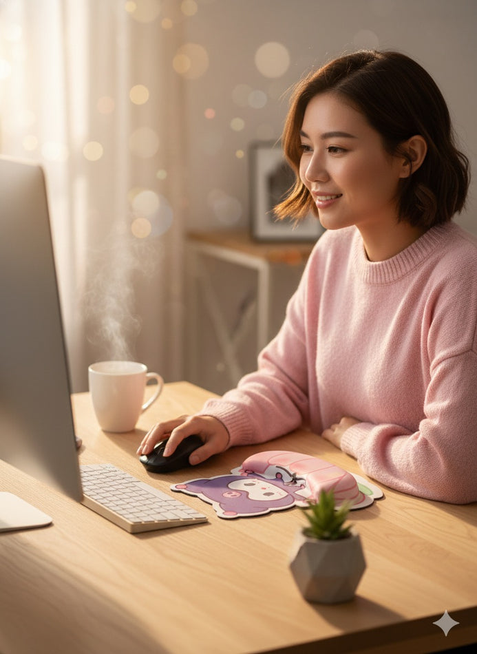 Almohadilla para ratón con el adorable diseño de Kuromi. Perfecta para gamers y amantes del anime que buscan agregar un toque de estilo a su espacio de trabajo. Superficie suave y antideslizante que proporciona comodidad durante largas sesiones de uso. Base de goma resistente que mantiene la almohadilla en su lugar. Compatible con cualquier tipo de ratón óptico o láser. Un accesorio funcional y decorativo que combina practicidad con tu personaje favorito.