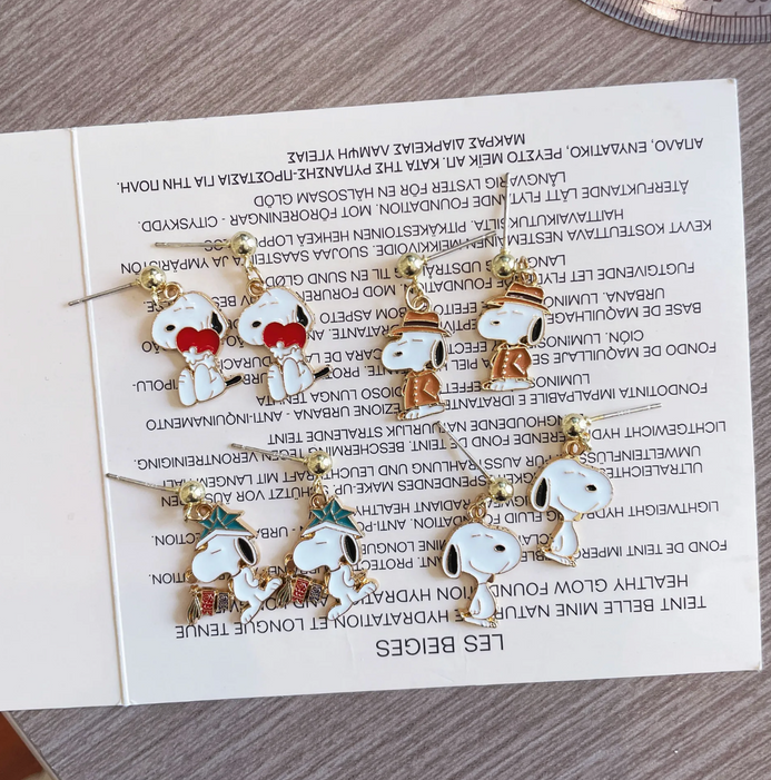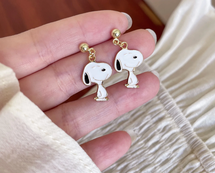 ¡Agrega un toque divertido a tu vestuario con estos aretes de Snoopy! Están hechos de acero inoxidable para mayor durabilidad y comodidad. Perfectos para cualquier amante de Snoopy, estos aretes seguramente te harán sonreír cada vez que los uses. ¡Haz que tus atuendos sean más alegres con estos aretes únicos!
