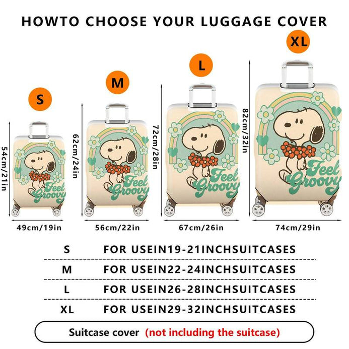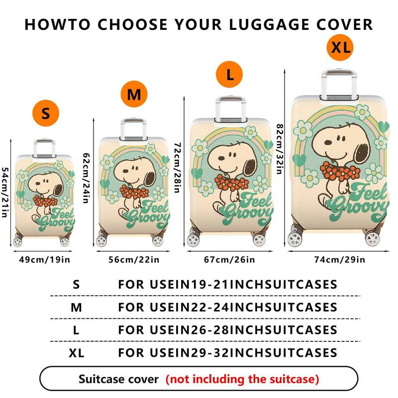 Protege tu equipaje con estilo con esta funda de maleta inspirada en Snoopy. Diseñada para envolver y resguardar tu maleta de arañazos, polvo y daños durante tus viajes, combina funcionalidad con el encanto del icónico personaje. Perfecta para viajeros que desean agregar un toque de diversión a su equipaje mientras mantienen su maleta en perfectas condiciones. Fácil de colocar y ajustar, es el accesorio ideal para cualquier aventura.