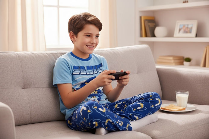 Conjunto de pijama infantil inspirado en Sonic, el icónico erizo azul. Perfecto para que los pequeños fans disfruten de comodidad y estilo a la hora de dormir. Fabricado con materiales suaves y transpirables, este set incluye playera y pantalón con diseños vibrantes que capturan la esencia del personaje. Ideal para regalos o para completar el guardarropa nocturno de cualquier niño que ame las aventuras de Sonic. Garantiza noches cómodas y divertidas.
