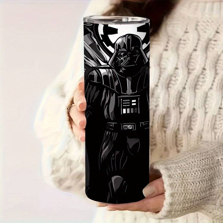 Disfruta de tus bebidas favoritas con este vaso metálico con tapa y carrizo inspirado en Darth Vader de Star Wars. Su diseño resistente mantiene tus líquidos seguros y su tapa evita derrames, ideal para llevarlo contigo a todas partes. Perfecto para fans que quieren combinar estilo y funcionalidad en cada sorbo.