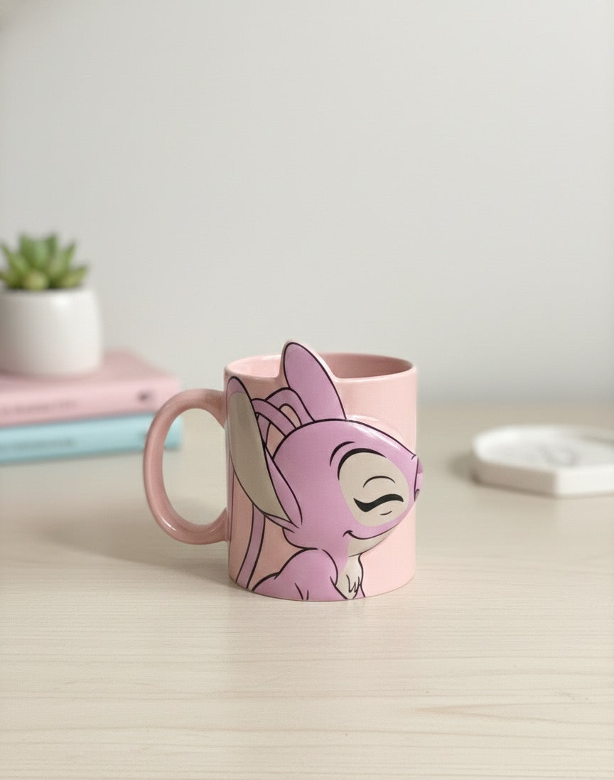 Taza de cerámica de alta calidad con el adorable personaje Angel Stitch estampado. Perfecta para disfrutar tu bebida favorita mientras celebras tu amor por este icónico personaje de Disney. El diseño vibrante y duradero resiste el uso diario y los lavados repetidos. Ideal como regalo para coleccionistas y fanáticos de Lilo & Stitch. Capacidad estándar de 11 oz, apta para lavavajillas y microondas.