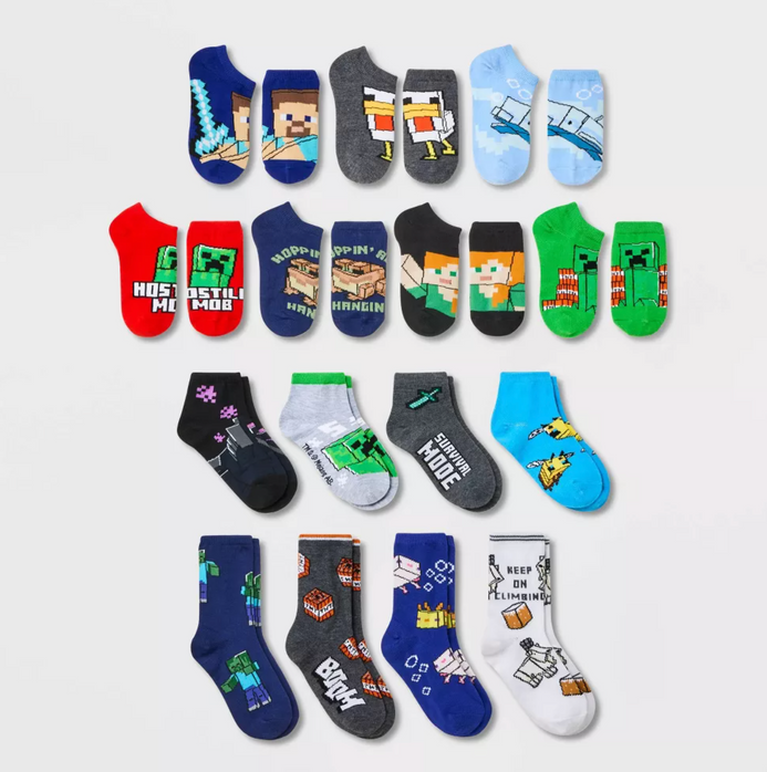 Construye el cajón de los calcetines de tu hijo con un estilo festivo con el Calendario de Adviento de 15 días de calcetines de Minecraft. Este juego de regalo de calcetines para niños viene con 15 pares de calcetines (cuatro calcetines de un cuarto, cuatro calcetines redondos y siete calcetines invisibles) para cada día previo a Navidad (aunque a su hijo le encantará usarlos mucho después de que termine la temporada navideña) . Cada par presenta un estampado divertido con el tema de Minecraft para un estilo auténtico, y vienen en una variedad de colores que permite mezclarlos y combinarlos fácilmente con una variedad de looks. Además, con la caja de regalo festiva del calendario de Adviento, este paquete de calcetines es el regalo navideño perfecto para cualquier fanático de Minecraft.