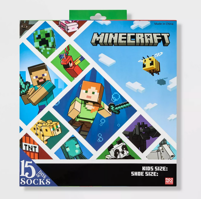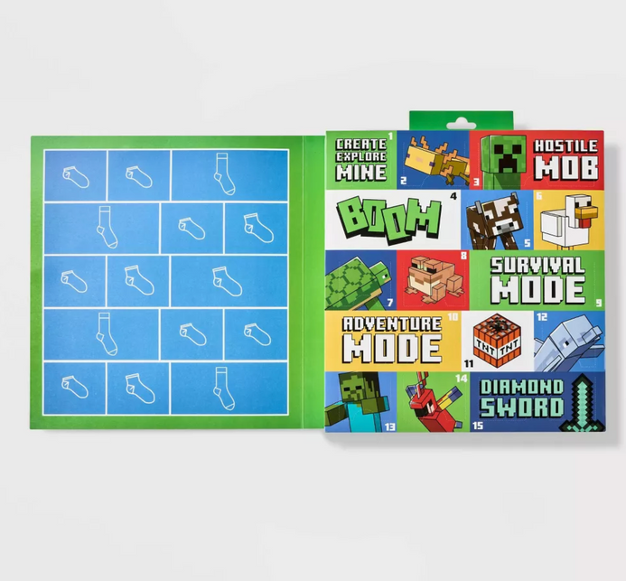 Calendario de Adviento de 15 días de Medias de Minecraft para niños