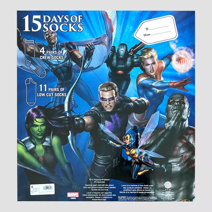 Calendario de Adviento de 15 días de Medias de Marvel para hombre, paquete de 15, 6-12