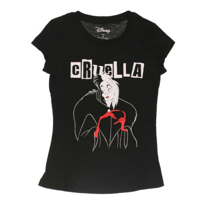 A los fans les encantará la camiseta con estampado de cruella. tiene el estilo malo más lindo, ¡por el precio correcto!