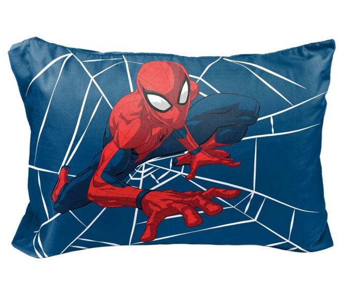 A los fans de Spider-Man de todas las edades les encantará esta funda de almohada. Es suave y acogedor y sería una excelente adición a cualquier dormitorio de la casa. La hora de dormir no es un problema cuando Spidey está ahí para protegerte. Este artículo es parte de la colección más grande de ropa de cama de Spider-Man aquí en Target. Esta funda de almohada mide 20 pulgadas por 30 pulgadas. Es lavable a máquina y apto para secadora. Está hecho de 100% poliéster.