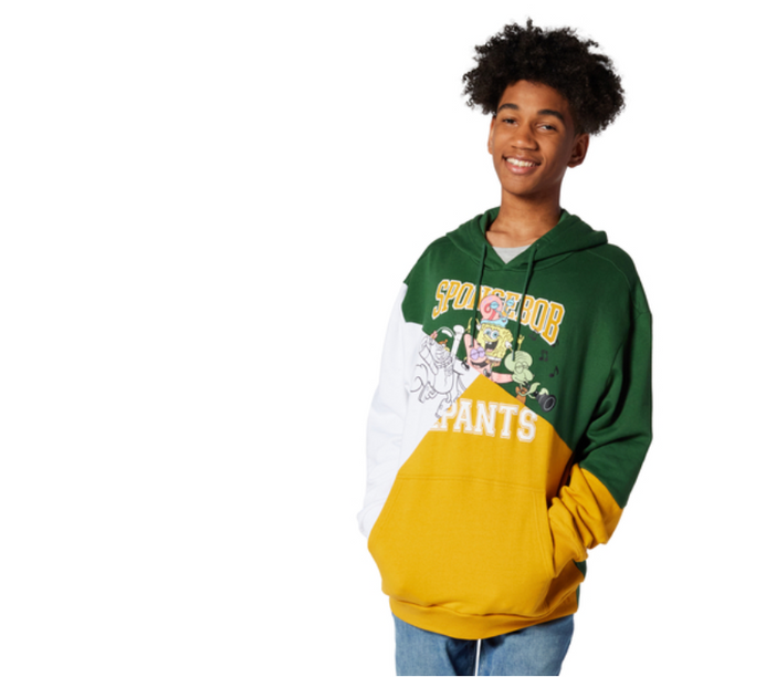 ¡Esta sudadera con capucha color block de Bob Esponja es una excelente manera de representar a tus personajes favoritos! ¿Están listos niños? ¡Sí, sí, capitán!