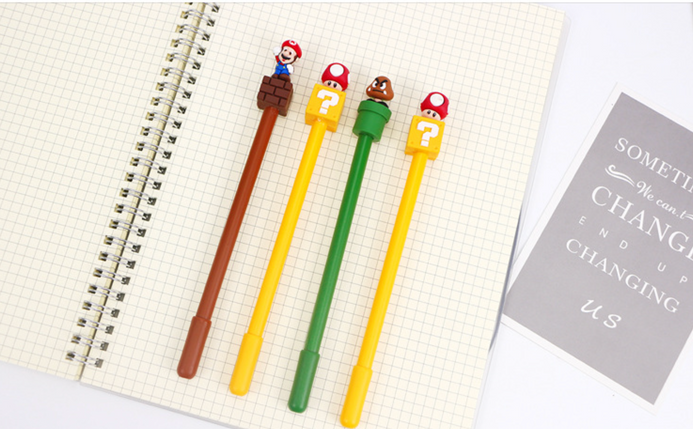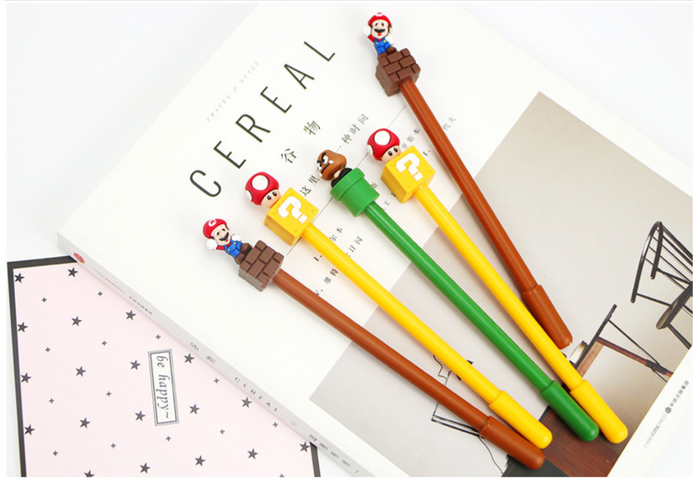 Pluma neutra negra de goma suave de SuperMario Bros animados lindo agua de carbono de oficina