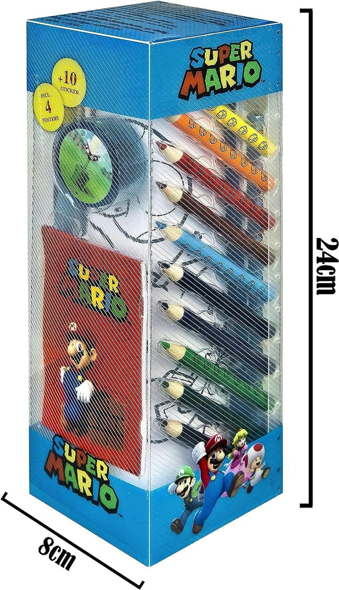 juego de papelería de 35 piezas para niños (10 mini lápices de colores, 6 rotuladores, 1 lápiz, 1 regla, 1 borrador, 1 sacapuntas, 1 bloc de notas, 4 carteles, 10 pegatinas). las dimensiones de la torre de pintura son 24 cm x 8 cm x 8 cm (largo x ancho x alto). Este conjunto de arte es absolutamente asombroso y viene completamente cargado con muchos elementos para pintar, dibujar y colorear. el juego de pintura para niños está hecho de plástico, madera, caucho y papel. Haga que sus hijos disfruten de las festividades dándoles algo que hacer que definitivamente les encantará. Como todo viene empacado en una caja tipo torre, los niños pueden llevar este juego de arte a cualquier parte. Ofreciendo horas de juego creativo fantástico que constituye una excelente alternativa al tiempo improductivo frente a la pantalla.Anima a tus pequeños a expresarse con actividades creativas. Incluye también un set de papelería perfecto para el colegio o el hogar. Puedes esconderlo en un cajón para cumpleaños, regalo de Navidad, será un kit de útiles escolares sorprendente.