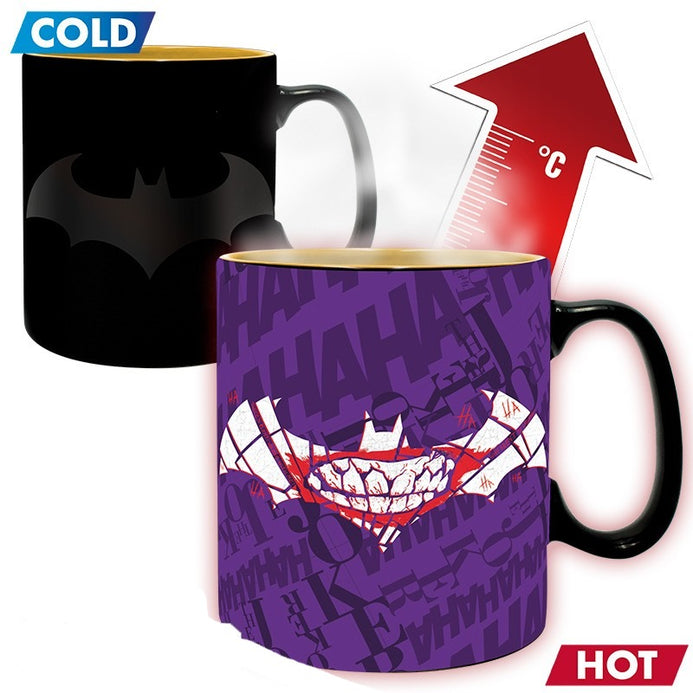 ¿Qué sería de Batman sin el Joker? El Caballero Oscuro siempre está perseguido por la risa y la sonrisa de su mayor némesis cuando este último conspira contra Gotham. Redescubre la terrible belleza de este dúo esencial d con esta impresionante taza termocambiable