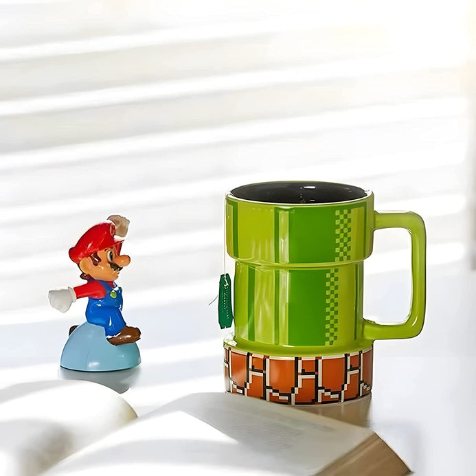 - Forma única. La taza está moldeada en forma pipe de mario y se puede añadir a tu colección de productos de Super Mario Brothers.