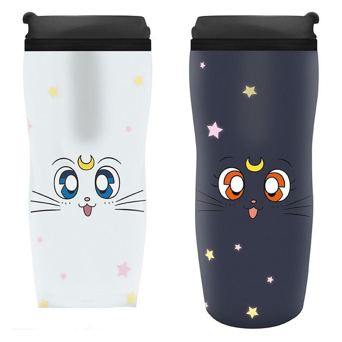 Los dos gatos guardianes, Luna y Artemis, velarán por tu bebida favorita con esta taza de viaje Sailor Moon