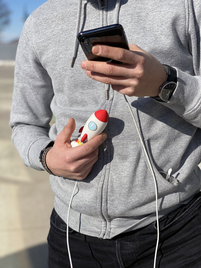 El cargador Rocket está equipado con una batería de 2600 mAh y carga cualquier teléfono inteligente iOS y Android.