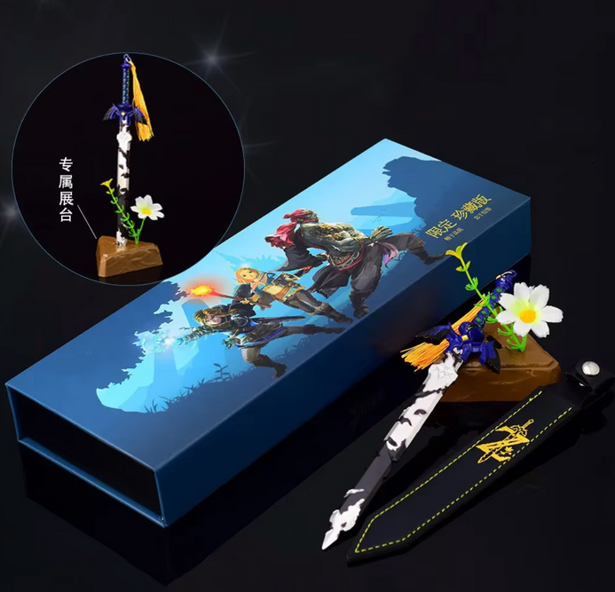 Descubre esta impresionante figura de la icónica espada de Zelda, completa con funda protectora y base de exhibición. Perfecta para coleccionistas y fanáticos de la saga, esta pieza captura los detalles legendarios del arma más famosa del reino de Hyrule. La base estable permite lucirla con orgullo en tu escritorio, estantería o vitrina. Un must-have para cualquier amante de The Legend of Zelda que busque un artículo de calidad premium para su colección.