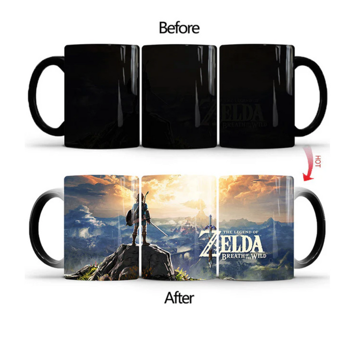 Descubre la magia de la Taza Zelda Change Color. Con solo verter una bebida caliente, esta taza cambia de color y revela un diseño único de Zelda. Perfecta para los amantes del famoso juego de video, ¡añade un toque de diversión a tu día con esta taza vibrante y emocionante!