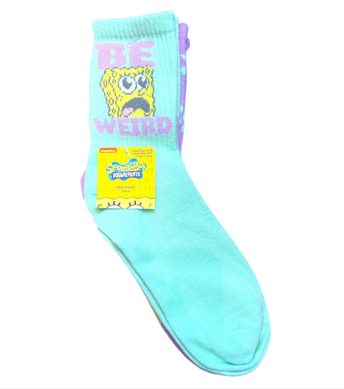 Diviértete con este pack de 2 pares de medias de Bob Esponja con el lema "Be Weird". Añade un toque de diversión y originalidad a tu estilo diario con estos coloridos calcetines que celebran la peculiaridad del personaje más querido de Fondo de Bikini.