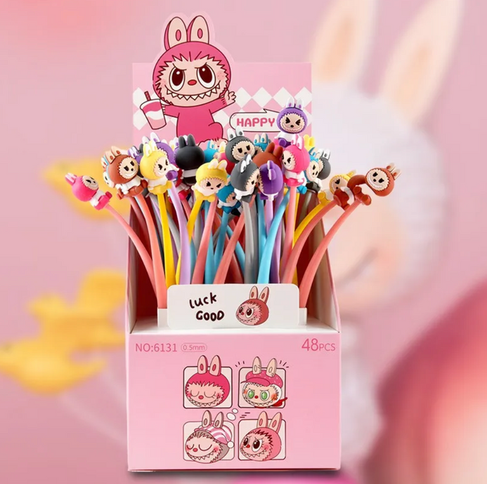 # Boligrafos Labubu Bolígrafos inspirados en el icónico personaje Labubu, perfectos para coleccionistas y fans de Pop Mart. Diseño único con detalles que capturan la esencia del personaje, ideal para escribir con estilo. Cada bolígrafo es un accesorio funcional que combina utilidad con la pasión por el coleccionismo. Agrega un toque de personalidad a tu escritorio o mochila. Disponible en múltiples variantes para completar tu colección.