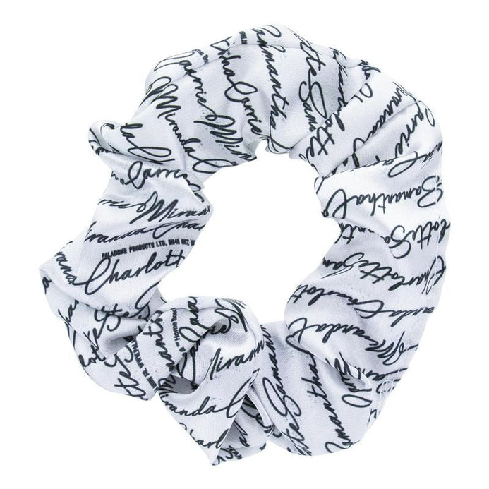 A pesar de los pensamientos de Carrie Bradshaw sobre los coleteros, ¡el accesorio para el cabello vuelve a estar de moda! El coletero que acompaña a este conjunto tiene una impresión repetida en blanco y negro de los nombres de las damas de Sex and the City: Carrie, Miranda, Charlotte y Samantha.