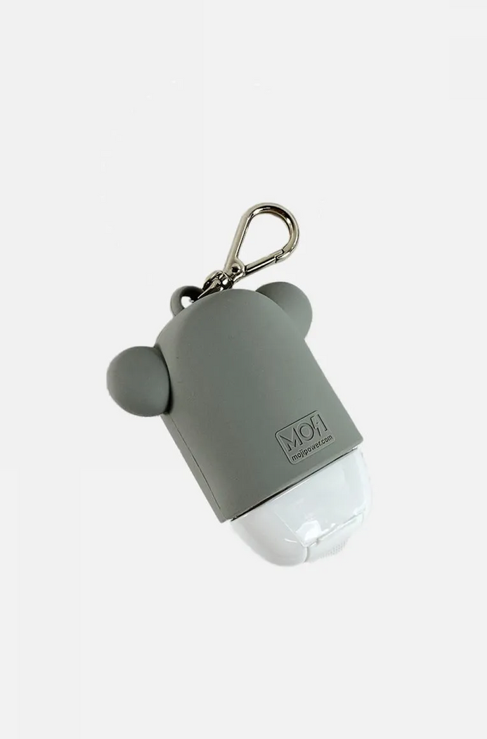 La botella desinfectante de manos viene con un ganchito de seguridad que te permite llevarla a todas partes.
