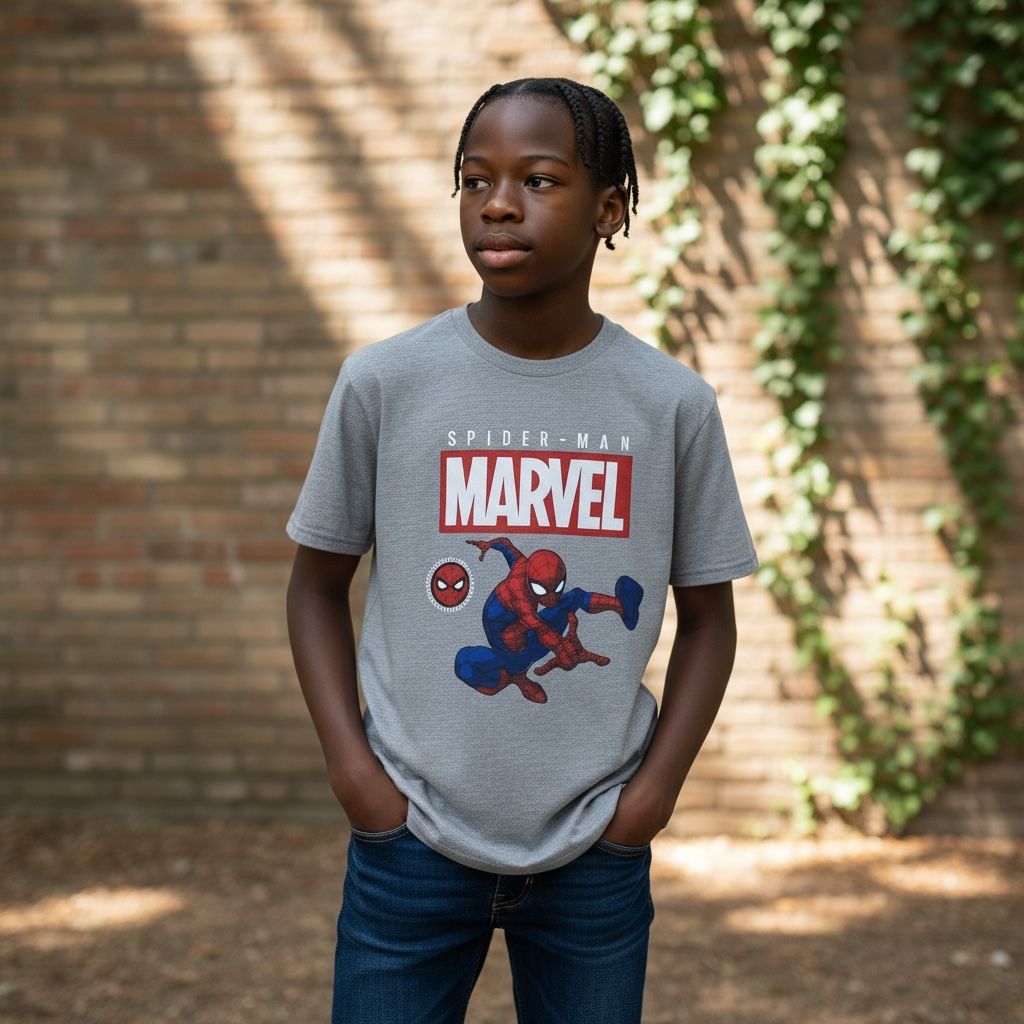 Franela cómoda y versátil para niños con el icónico diseño de Spiderman de Marvel. Confeccionada en tela suave y resistente, esta prenda gris es perfecta para el uso diario, ofreciendo calidez y estilo. Ideal para fans del superhéroe, combina funcionalidad con un diseño que los pequeños adorarán. Material de calidad que resiste múltiples lavados manteniendo su forma y color.