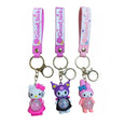 Llaveros Sanrio iluminados que brillan en la oscuridad. Estos accesorios prácticos cuentan con luces LED integradas que facilitan encontrar tus llaves al instante. Diseñados con personajes Sanrio adorables en colores vibrantes, son tanto funcionales como decorativos. La batería de larga duración garantiza uso prolongado. Perfecto para niños y adultos que buscan un toque de diversión y utilidad en sus accesorios diarios.