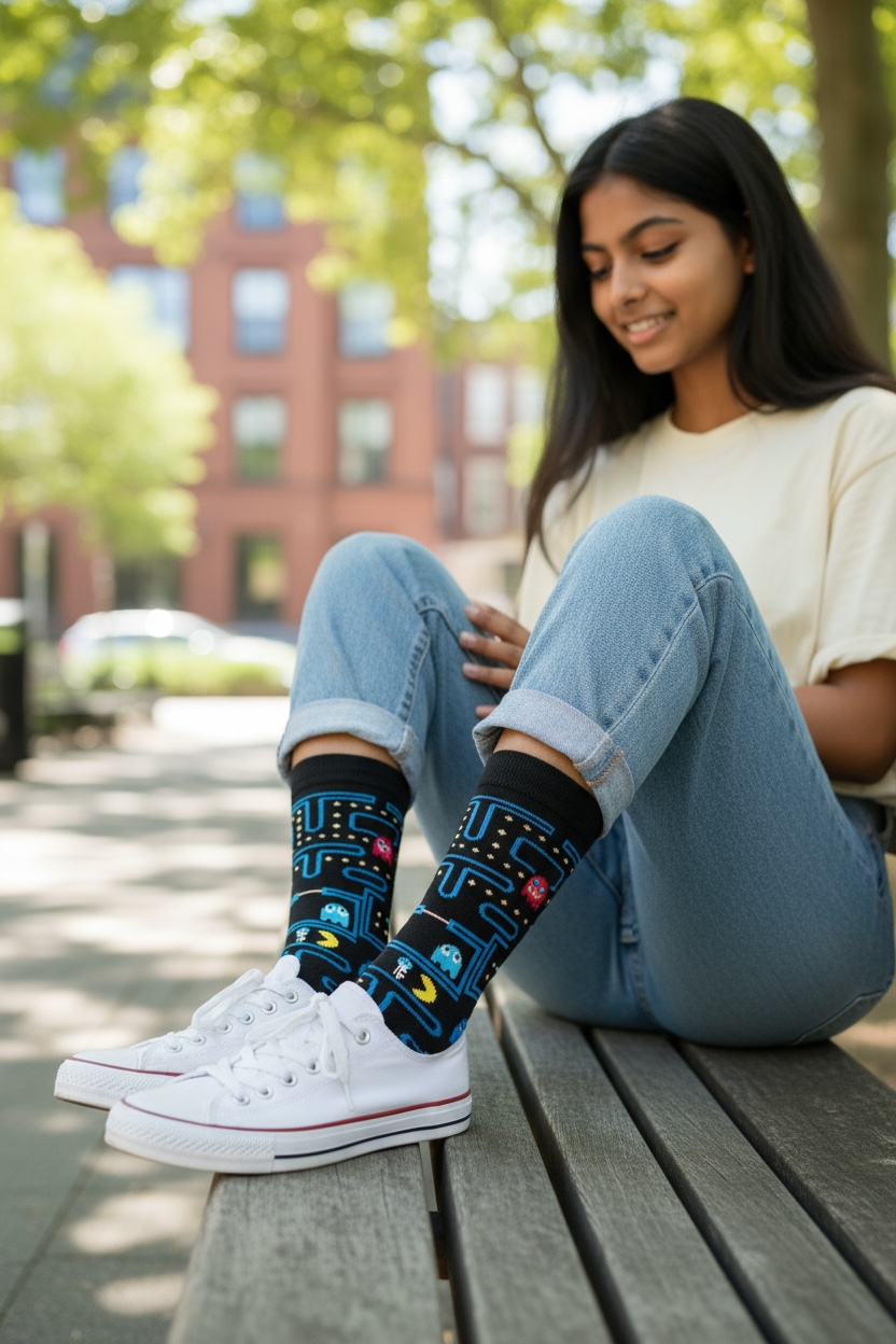 Disfruta de la comodidad y el estilo con estas Medias Pacman, perfectas para los amantes de los videojuegos clásicos. Su diseño divertido y colorido añade un toque único a cualquier atuendo, mientras que su material de alta calidad garantiza durabilidad y confort durante todo el día. Ideales para uso diario o como un regalo original.
